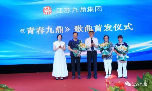 仪式上,词作者王子和老师、曲作者吴博胜老师分别分享了创作过程。集团党委书记、董事长顾清波向王子和老师、吴博胜老师以及在《青春九鼎》创作上给予关心和支持的葛继延老师献花,表示感谢。