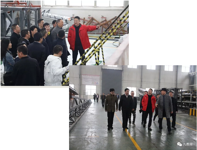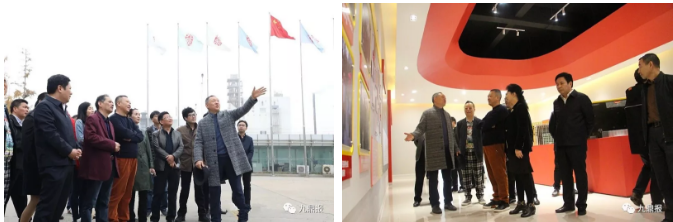考察团首先参观了九鼎新材叶片车间,实地考察了企业的生产经营状况;随后参观了“鼎”字雕塑以及九鼎新材产品展厅。董事长顾清波向考察团介绍了企业的整体概况、主营业务、主要产品等,随后向考察团阐述了“鼎”的来源等企业文化发展沿革和文化精神体系。