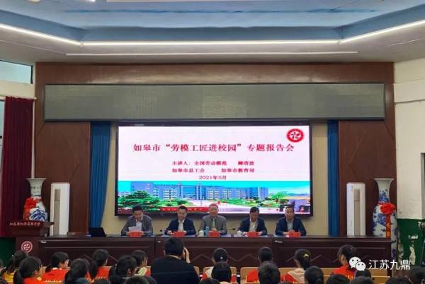 5月19日,全国劳动模范,江苏九鼎集团党委书记、董事长顾清波受如皋市总工会邀请,走进江安高级中学,和师生面对面,分享他的奋斗故事和工作感悟。